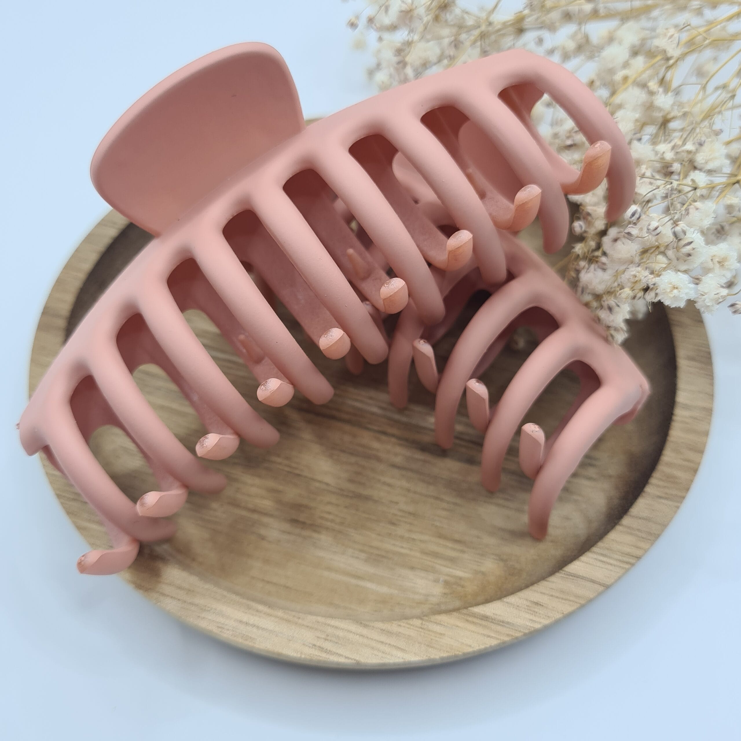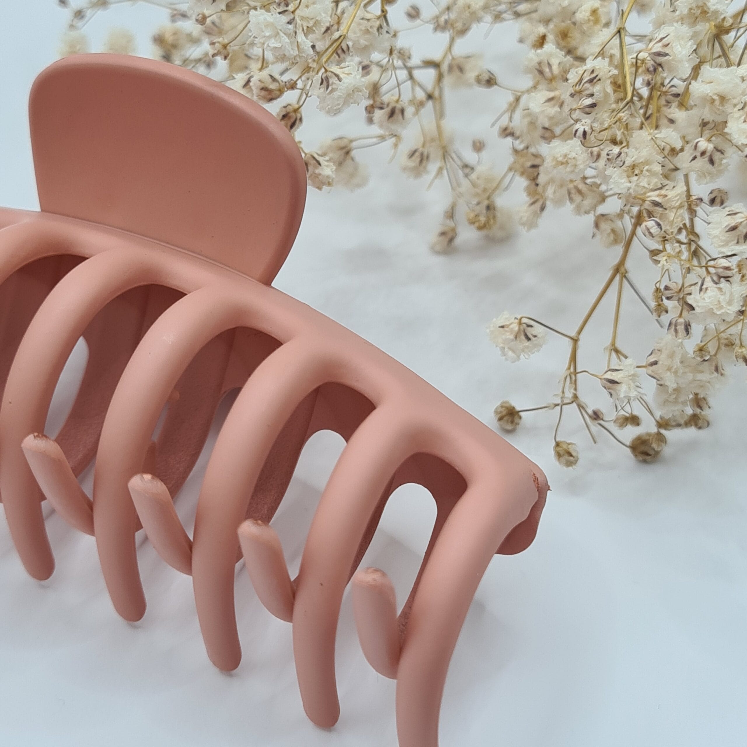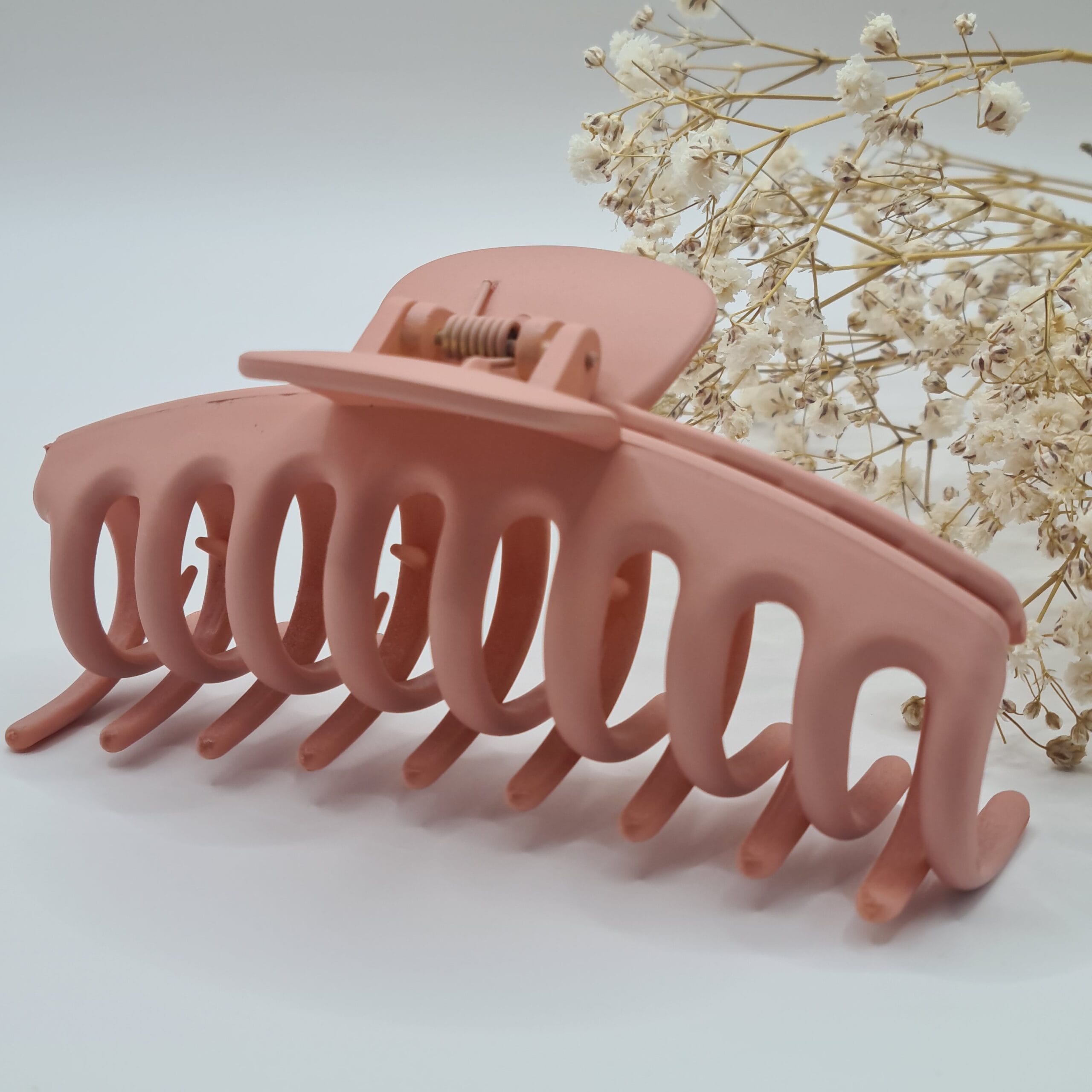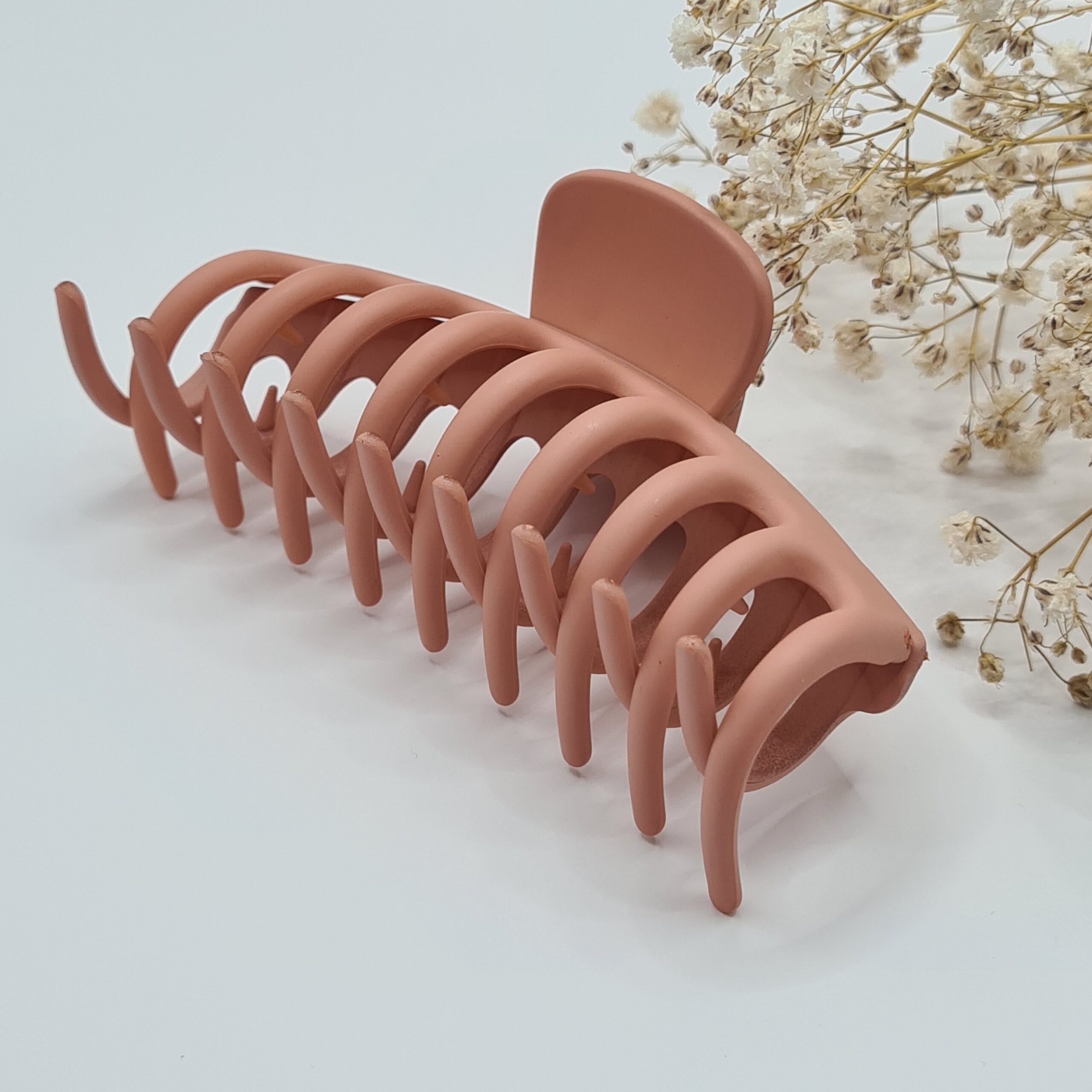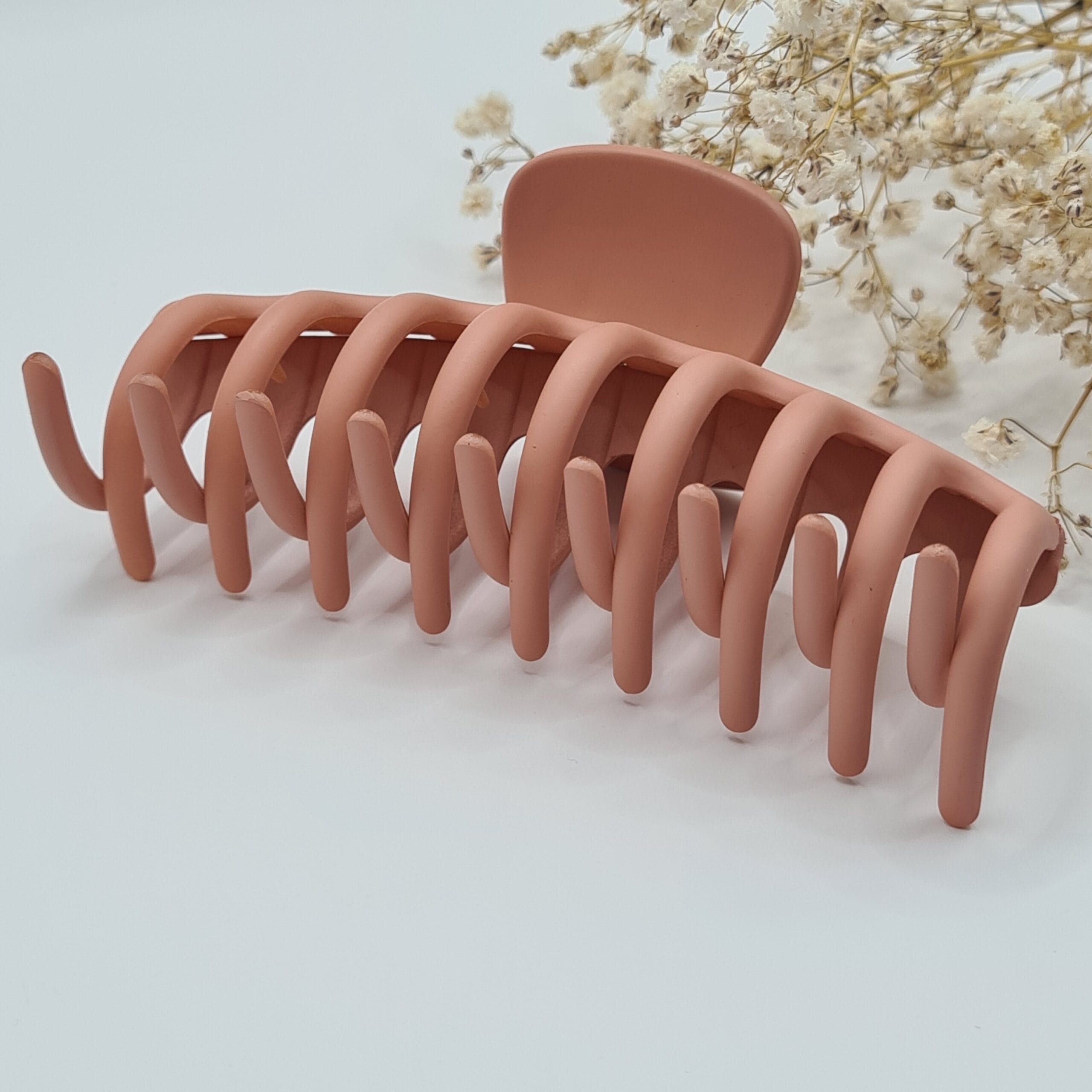 Achieve effortless, elegant hairstyles with this matte peach hair claw. Featuring a soft-touch finish and a modern, curved design, this clip offers a secure and comfortable hold for all hair types. The large size and strong spring make it perfect for thick or long hair, ensuring your style stays in place all day without pulling or damage.